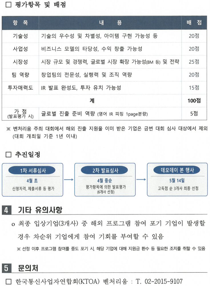 [모집공고] 제4회 KTOA 벤처리움 입주기업 데모데이 참가기업 모집공고